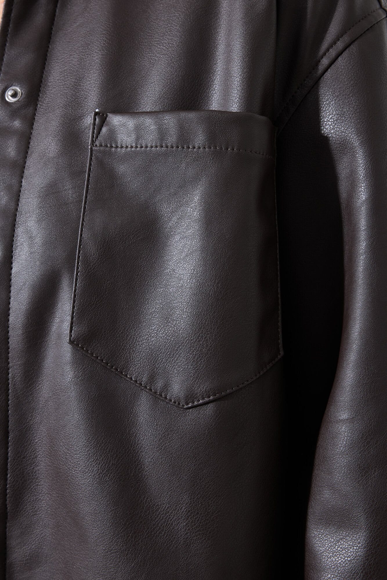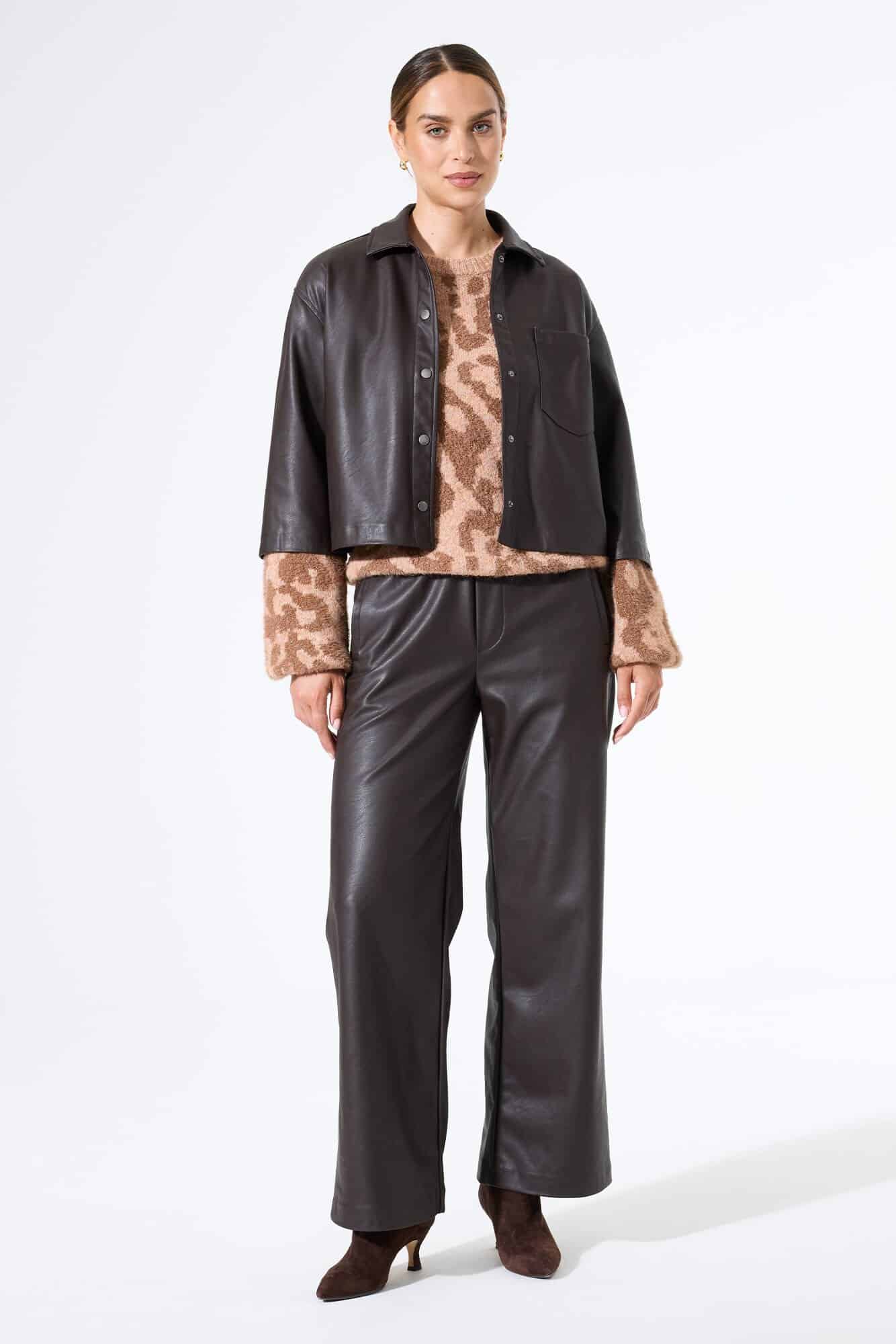 Cropped jack met een trendy leren look. Dit jack heeft een relaxte pasvorm, drukknoopsluiting en driekwart mouwen. Dit item is gemaakt van 100% polyester.