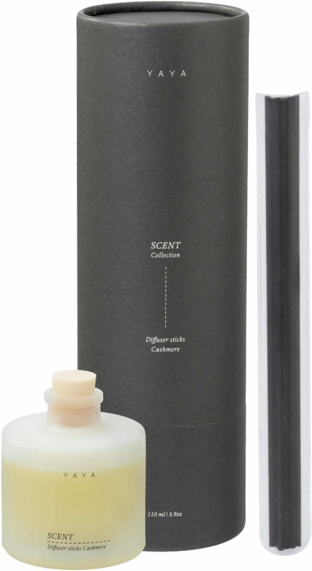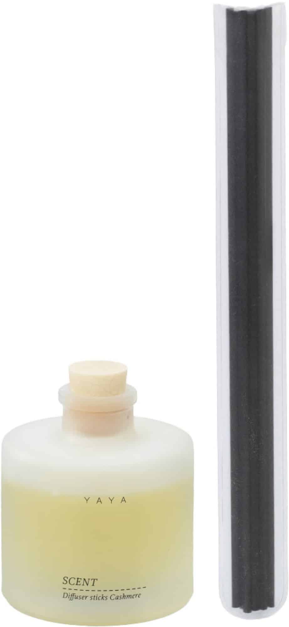 Deze luxe geurstokjes verspreiden een heerlijke cashmeregeur die zorgt voor een rustgevende sfeer in huis. De geurstokjes worden geleverd in een stijlvolle YAYA giftbox en bieden een langdurige, fijne geur. Perfect als cadeau of om jezelf te trakteren op een vleugje luxe. Inhoud: 110 ml.