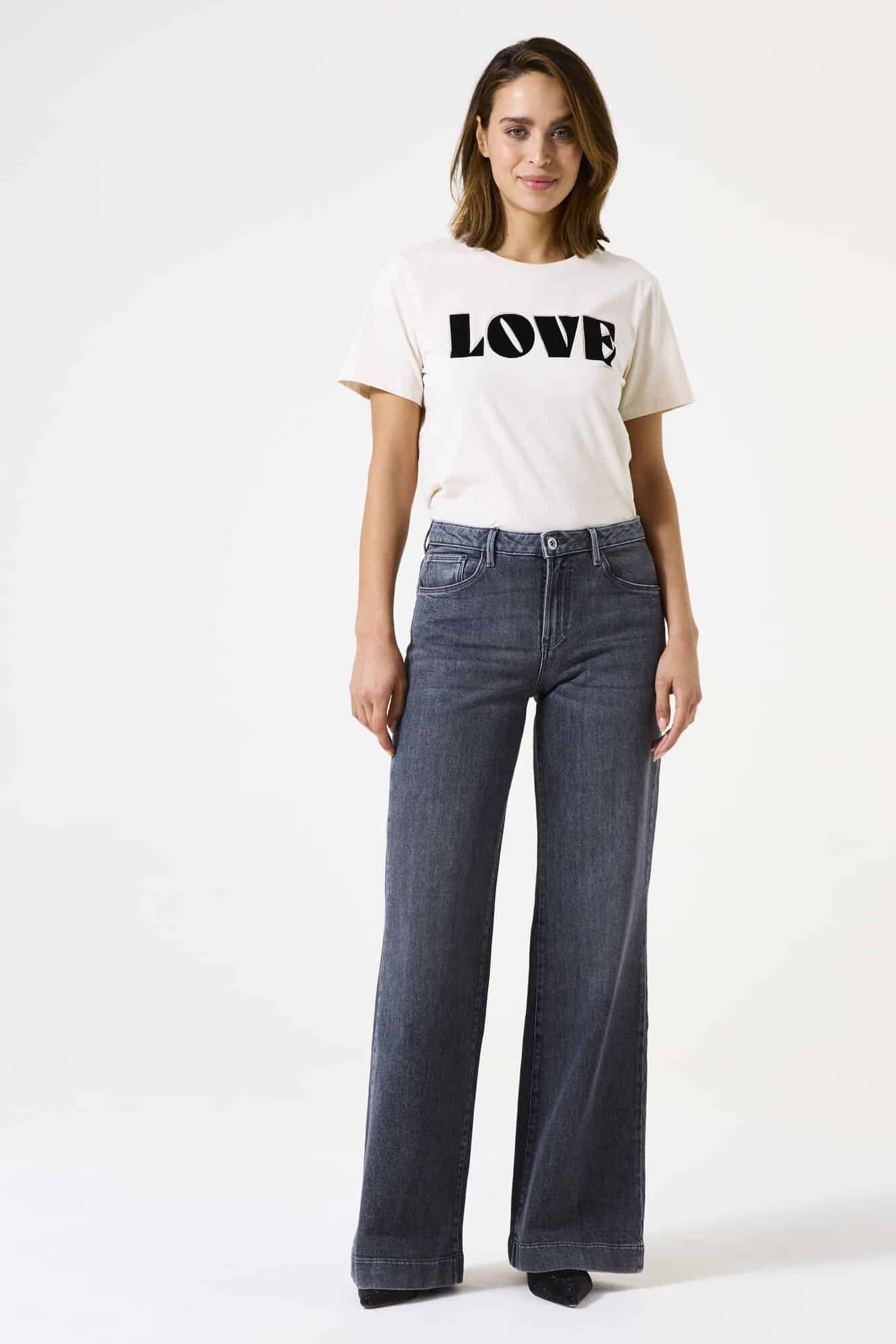 De Celia 249 is een wide fit jeans, dit 5-pocket model heeft wijd uitlopende pijpen. Deze jeans heeft een high waist en een knoop- en ritssluiting.