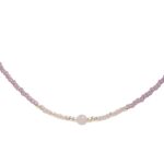 Maak kennis met de Excitement Rozenkwarts Zilverkleurige Ketting van A Beautiful Story. Deze mooie ketting is handgemaakt van glaskralen, messing, een rozenkwarts edelsteen en heeft een vergulde sluiting. De ketting heeft een aanpasbare lengte van 40 tot 43 centimeter.