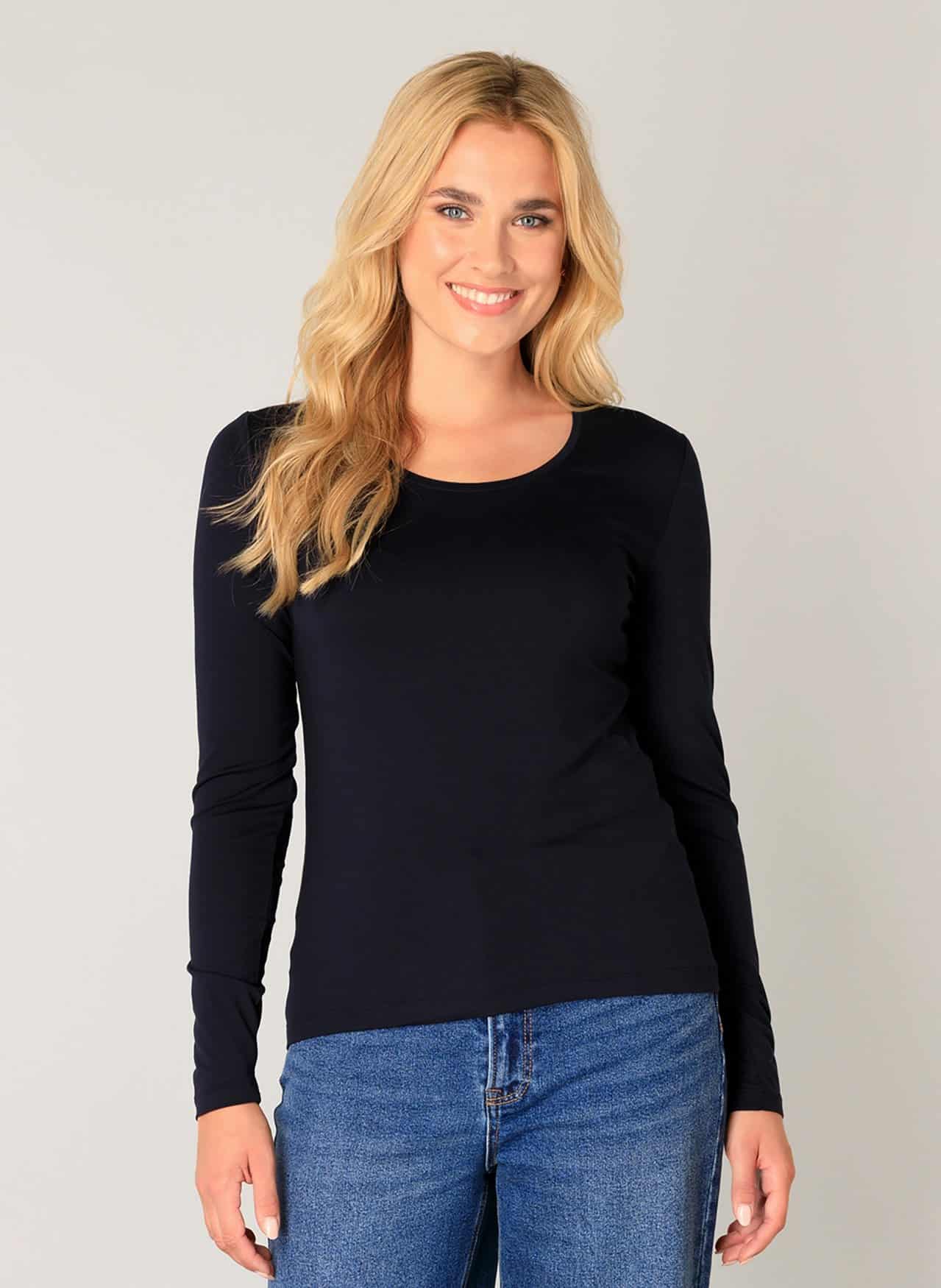Yaso is een slim fit T-shirt met lange mouwen van een zachte vicosemix en een ronde halslijn. Yaso is verkrijgbaar in white, black en dark blue.