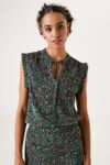 Plissé top met allover print. Ideaal voor een trendy look. Deze top heeft een ronde hals met strikbandjes en een regular fit. Dit item is gemaakt van 100% recycled polyster.